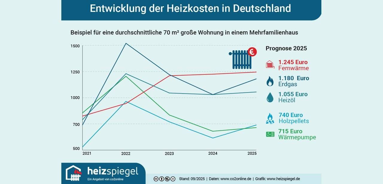 Das Ergebnis des Heizspiegels 2025 weist auf einen Wendepunkt bei den Heizkosten hin. Gaspreise steigen um 15 Prozent, während Holzpellets um 20 Prozent teurer werden. Heizöl wird um etwa 3 Prozent zulegen, Fernwärme um 2 Prozent. Wärmepumpen bleiben mit einer prognostizierten Steigerung von lediglich 5 Prozent vergleichsweise stabil. Verantwortlich dafür sind anhaltend hohe Energiepreise sowie ein besonders kalter Winterbeginn mit erhöhtem Wärmebedarf und globalem Druck auf Energiemärkte.